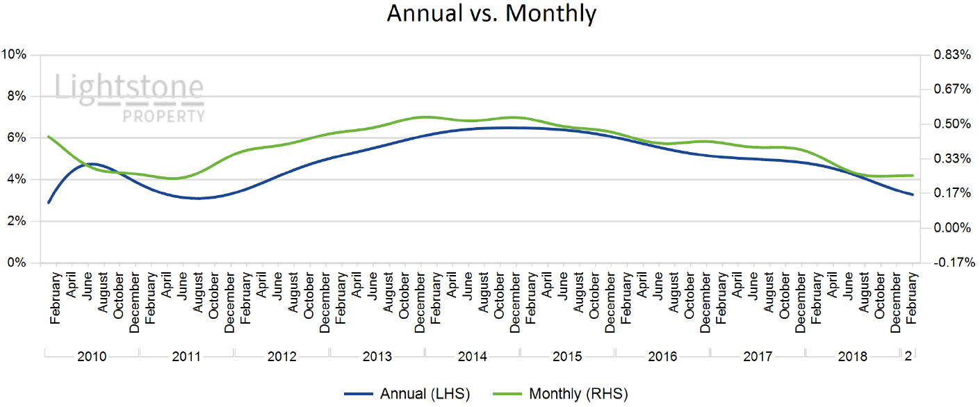 March 2019The market has been ranging in the 2% - 5% zone for some time now following a slow down in recent months as shown by the provincial indices but this is slowly changing as more provinces start to break above this range, namely Mpumalanga, Limpopo and the Northern Cape province.