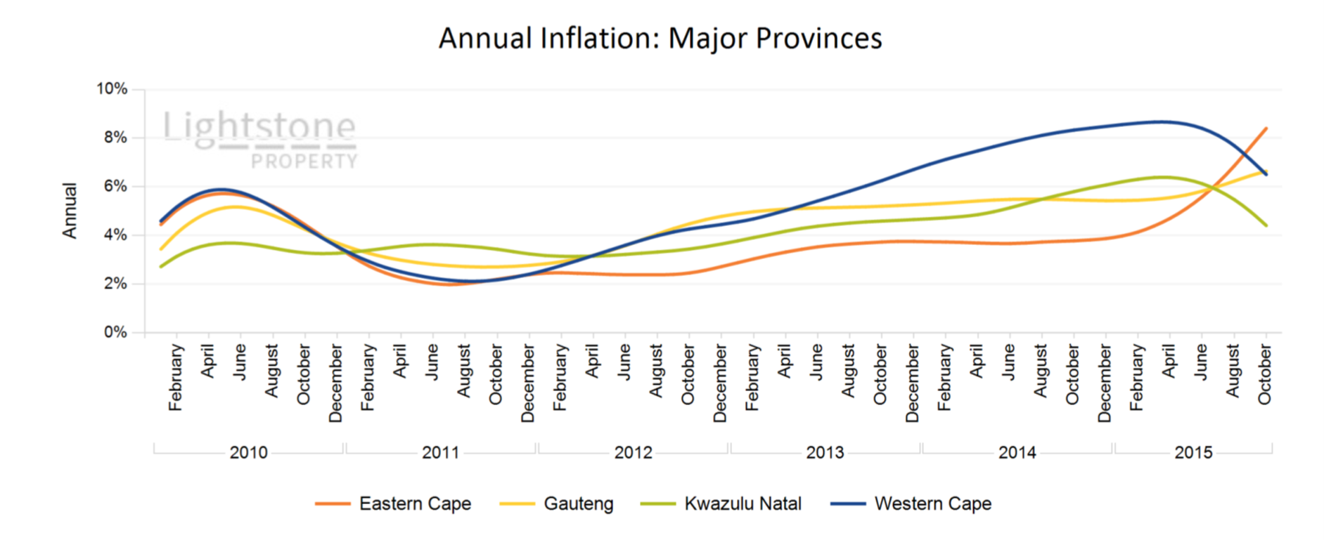 February 2016National house price inflation ended at 5.5% for the year of 2015, slightly below the Lightstone forecast. It is not expected that the current downward trajectory in house price inflation will come to an end in 2016 due to a looming recession and the sluggish growth experienced in 2015. Lightstone forecast 2016 property inflation to be less than in 2015 at 3.5%.
